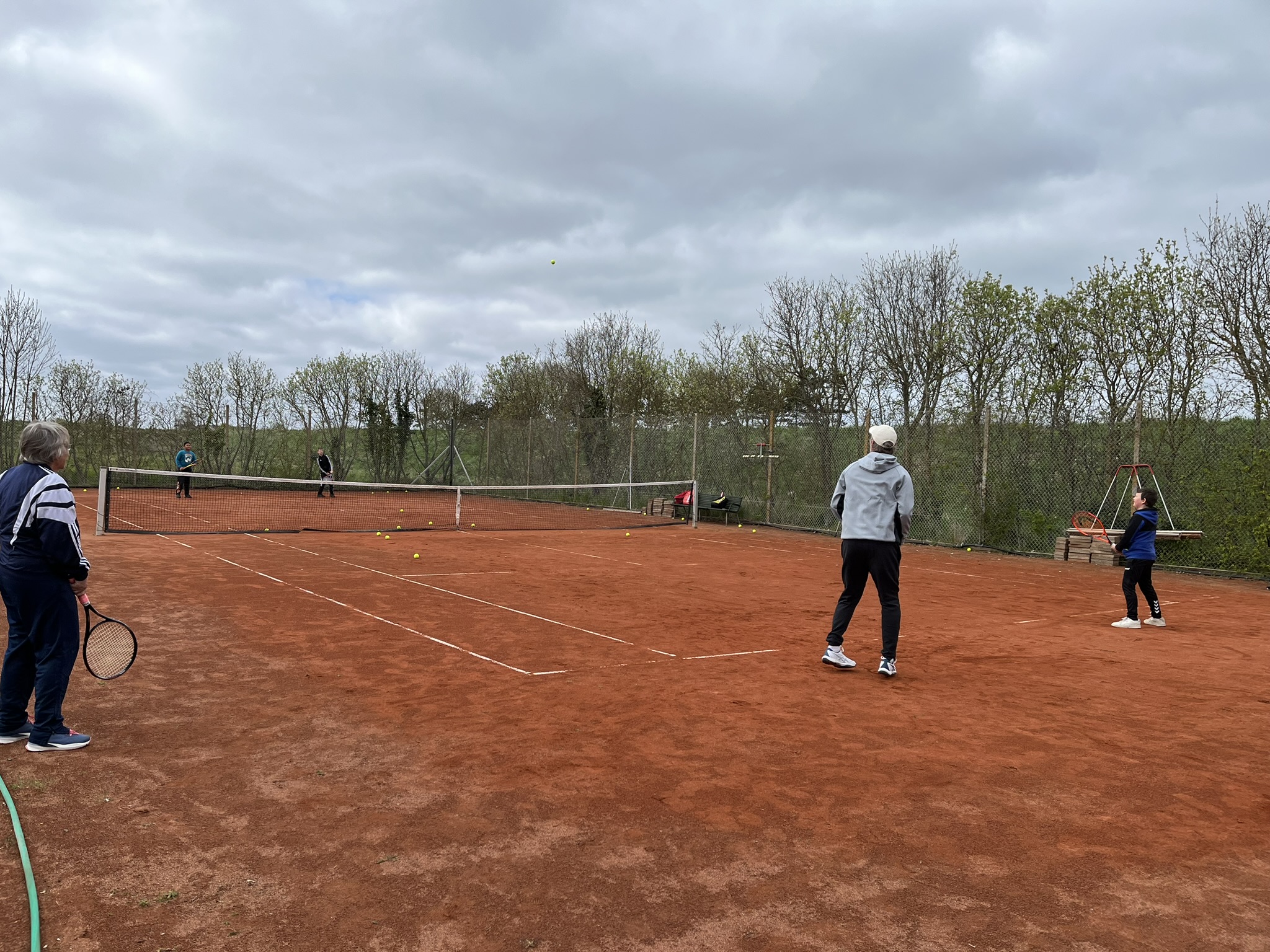 25-30 friske tennisspillere og forældre trodsede det voldsomme stormvejr og fik en fin tennisdag ud af besøget i Rudkøbing Tennisklub. De nyanlagte baner 1 og 2 var for forblæste til at vi kunne organisere noget, som mindede om tennistræning, så vi omrokerede og arrangerede os på bane 4 og 5, hvor der var - om ikke stille vejr - så dog nogenlunde læ.